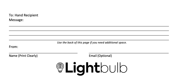 Write a personal message from your team to the recipient who will receive your hand, adding your name and email. These messages mean a lot to the recipient, so take this opportunity to inspire them!